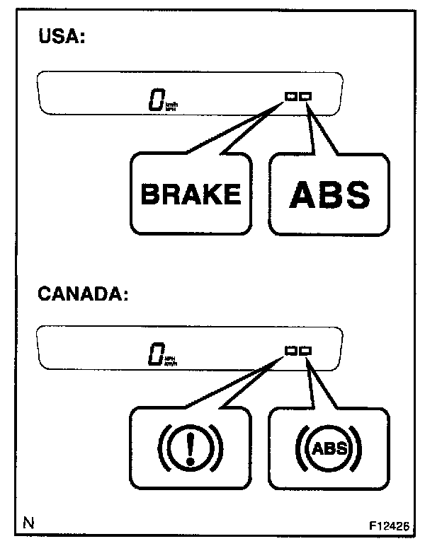- If the indicator check result is not normal, proceed to troubleshooting for the ABS warning light circuit or BRAKE warning light circuit.