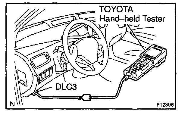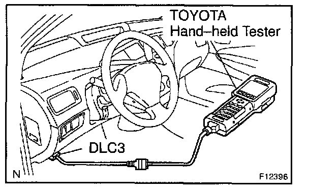 1. Hook up the TOYOTA hand-held tester to the DLC3.