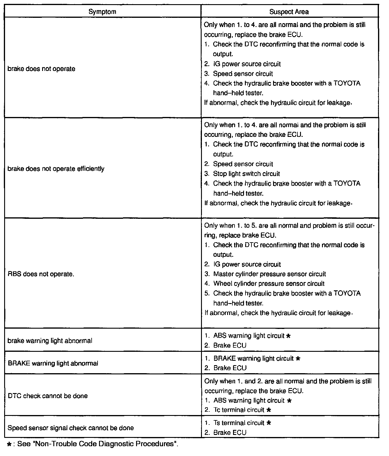 If a normal code is displayed during the DTC check but the problem still occurs, check the circuits for each problem symptom in the order given in the table and proceed to the relevant troubleshooting.