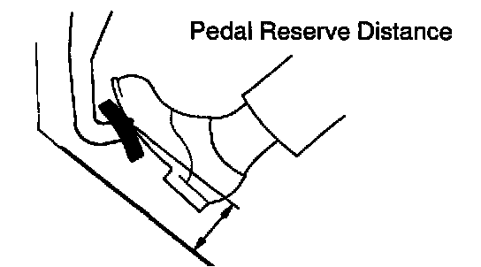 With engine running, depress the pedal and measure the pedal reserve distance, as shown.