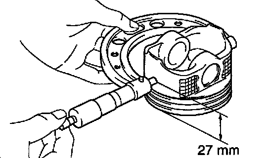 a. Using a micrometer, while placing the piston up side down, take measurement at the position of 27 mm (1.06 inch).