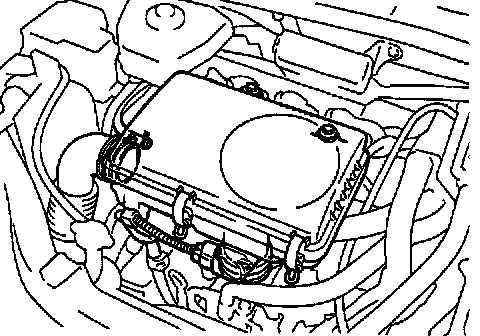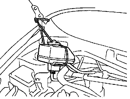 b. Remove the 2 bolts and remove the reservoir tank and suspend it.