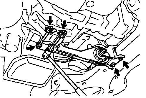 Remove the 4 bolts and 2 nuts and torque rod from the body.