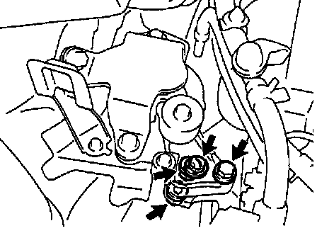b. Remove the 4 bolts and disconnect the A/C compressor from the engine.