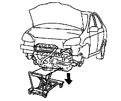b. Using a engine sliding device, and place the engine and transaxle assembly onto the stand.