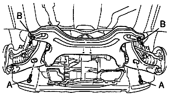 Remove the 4 bolts and disconnect the suspension member from the body.