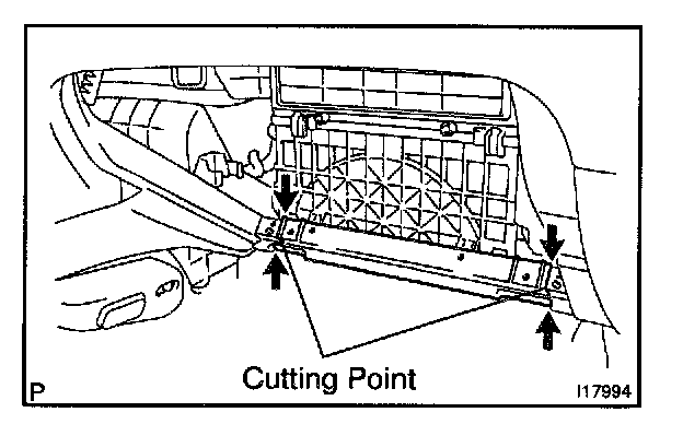 a. Using a knife, cut off the reinforcement of glove compartment.