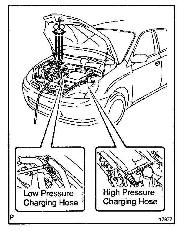 1. CONNECT CHARGE HOSE TO MANIFOLD GAUGE SET