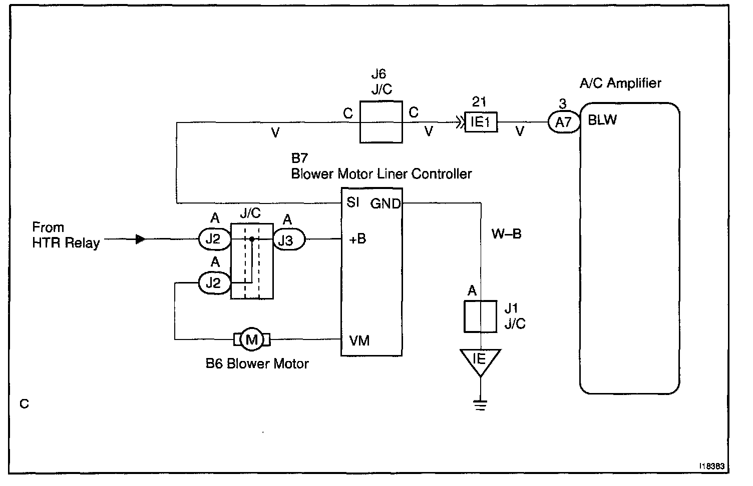 CIRCUIT DESCRIPTIONThe blower motor is operated by signals from the A/C amplifier.