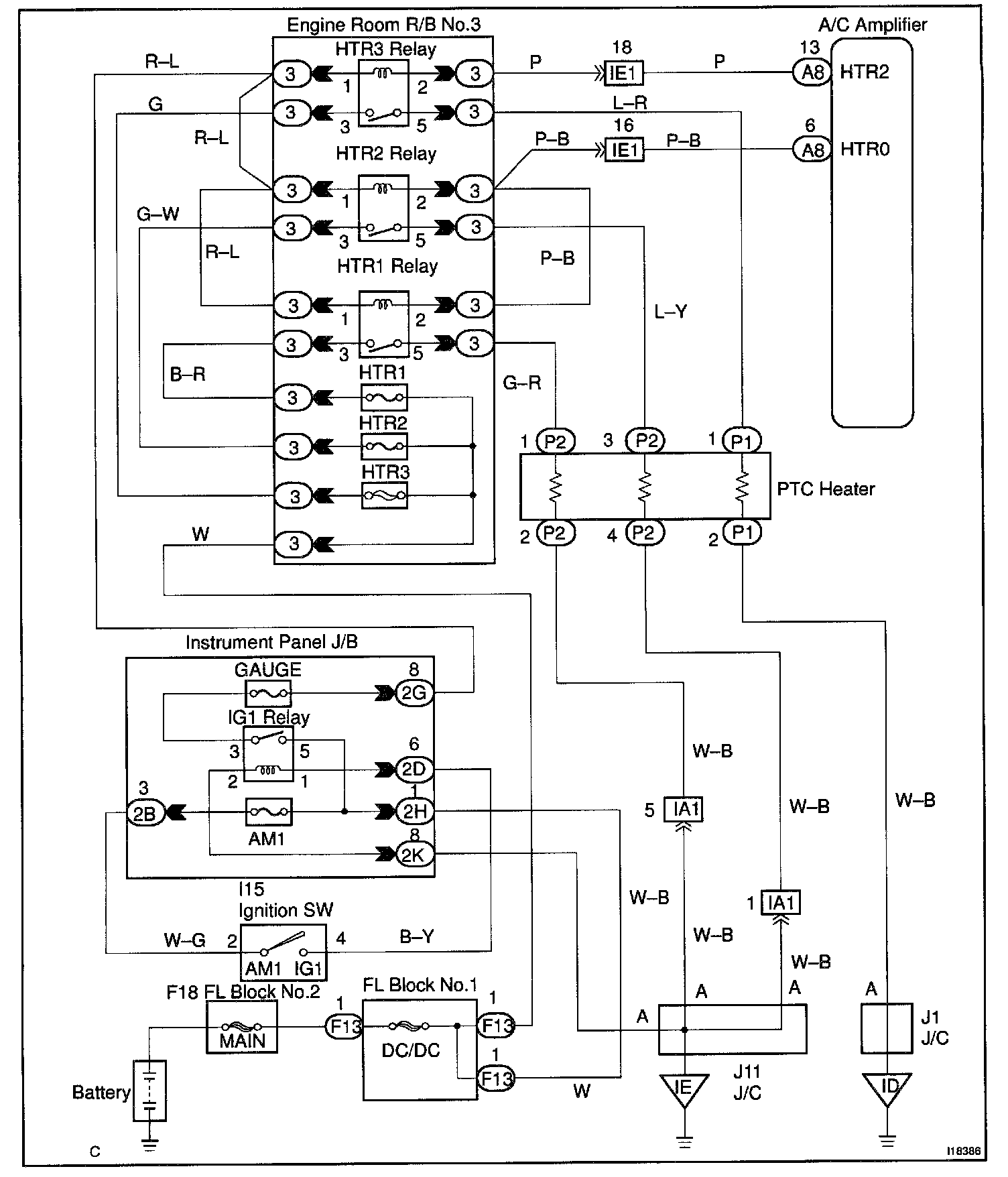 CIRCUIT DESCRIPTIONA/C amplifier switches the HTR3 relay ON by signal from the A/C amplifier. It supplies power to PTC heater (Quick heater).