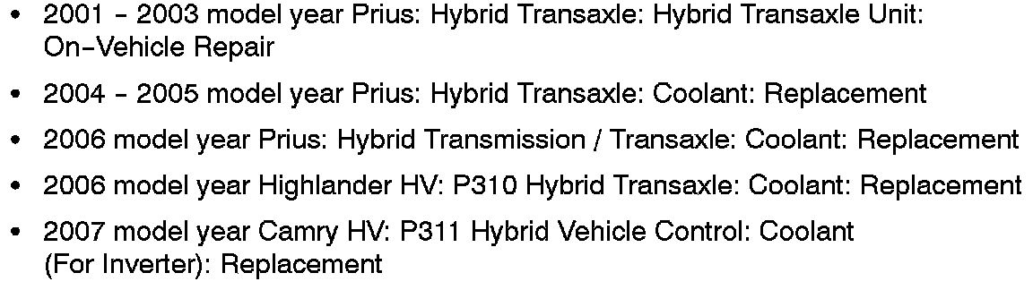 '01 - '06 Prius, '06 Highlander HV, & '07 Camry HV