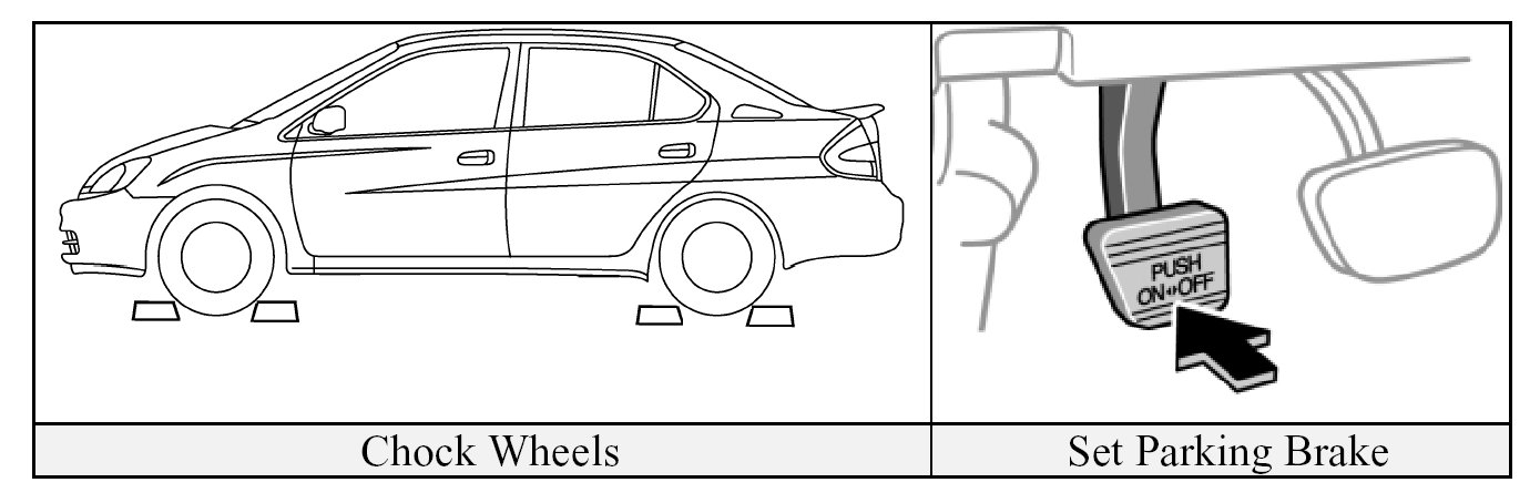 - Chock wheels and set the parking brake.