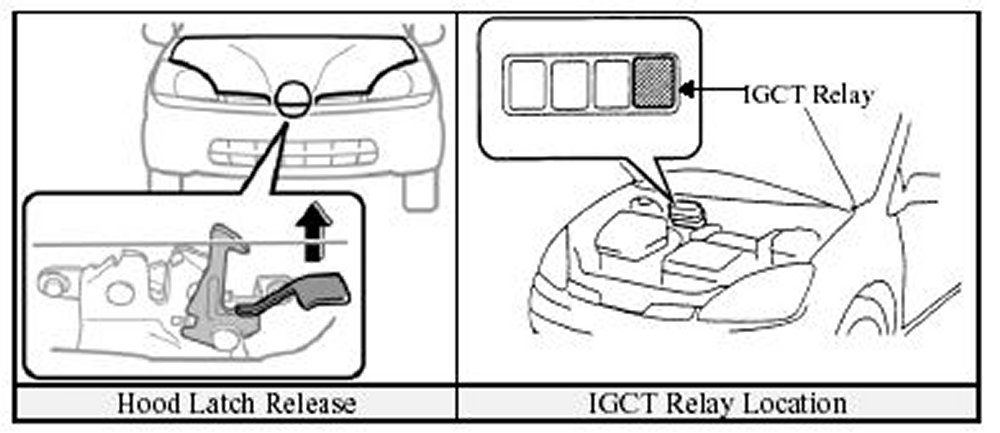 - Remove the IGCT relay in the engine compartment as shown in the illustration.