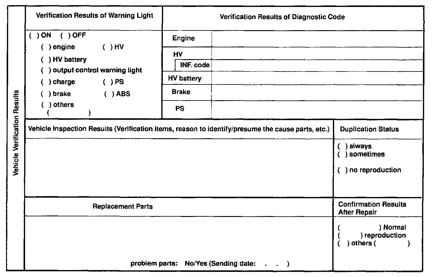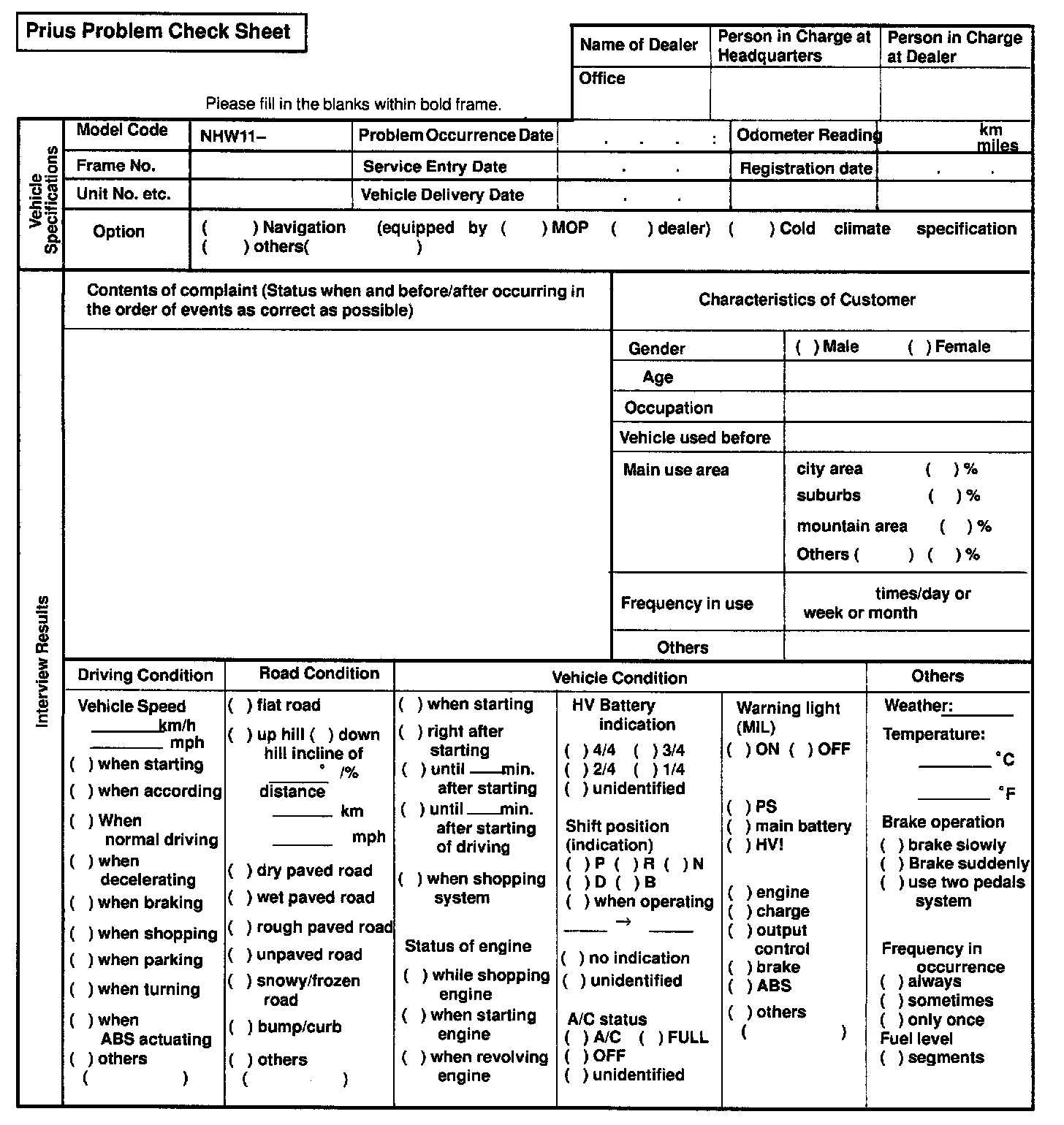 Prius Problem Check Sheet (Part 1):