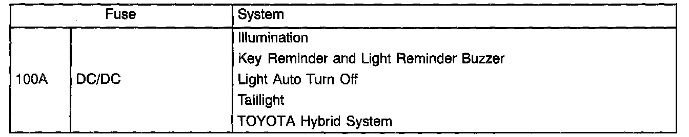 Fusible Link Block No.2 Fuse Applicatoins: