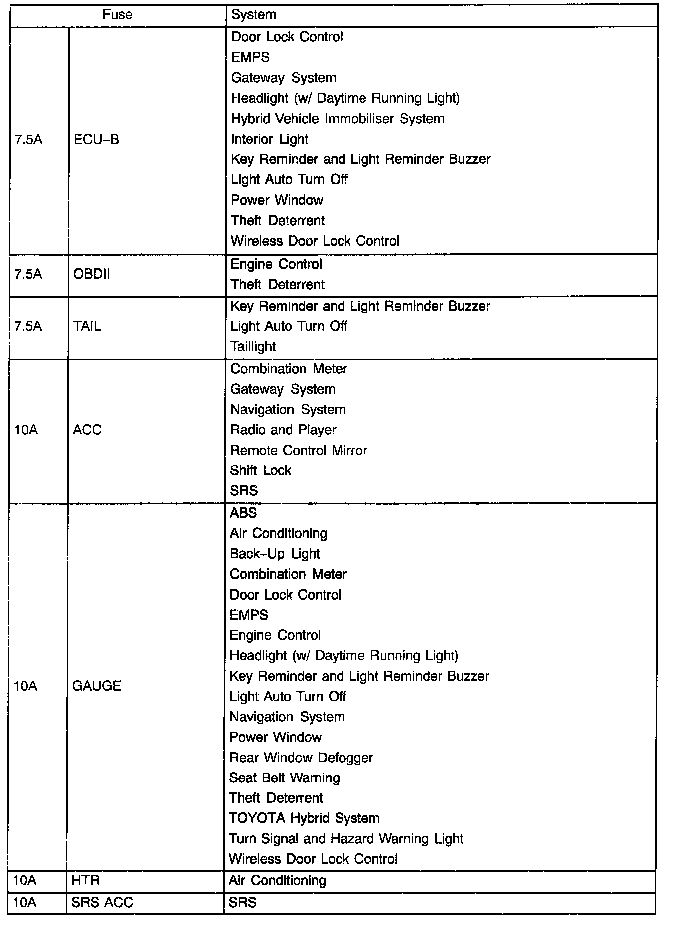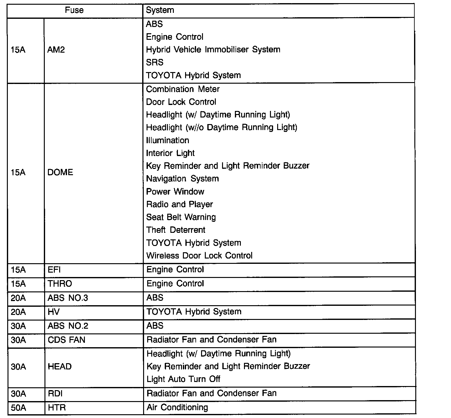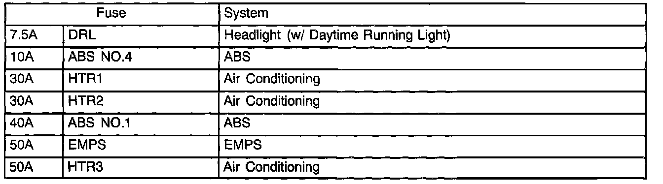 Engine Room R/B No.3 Fuse Applications: