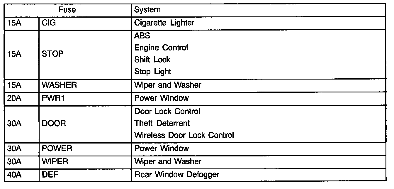 Interior Panel Fuse Identification
