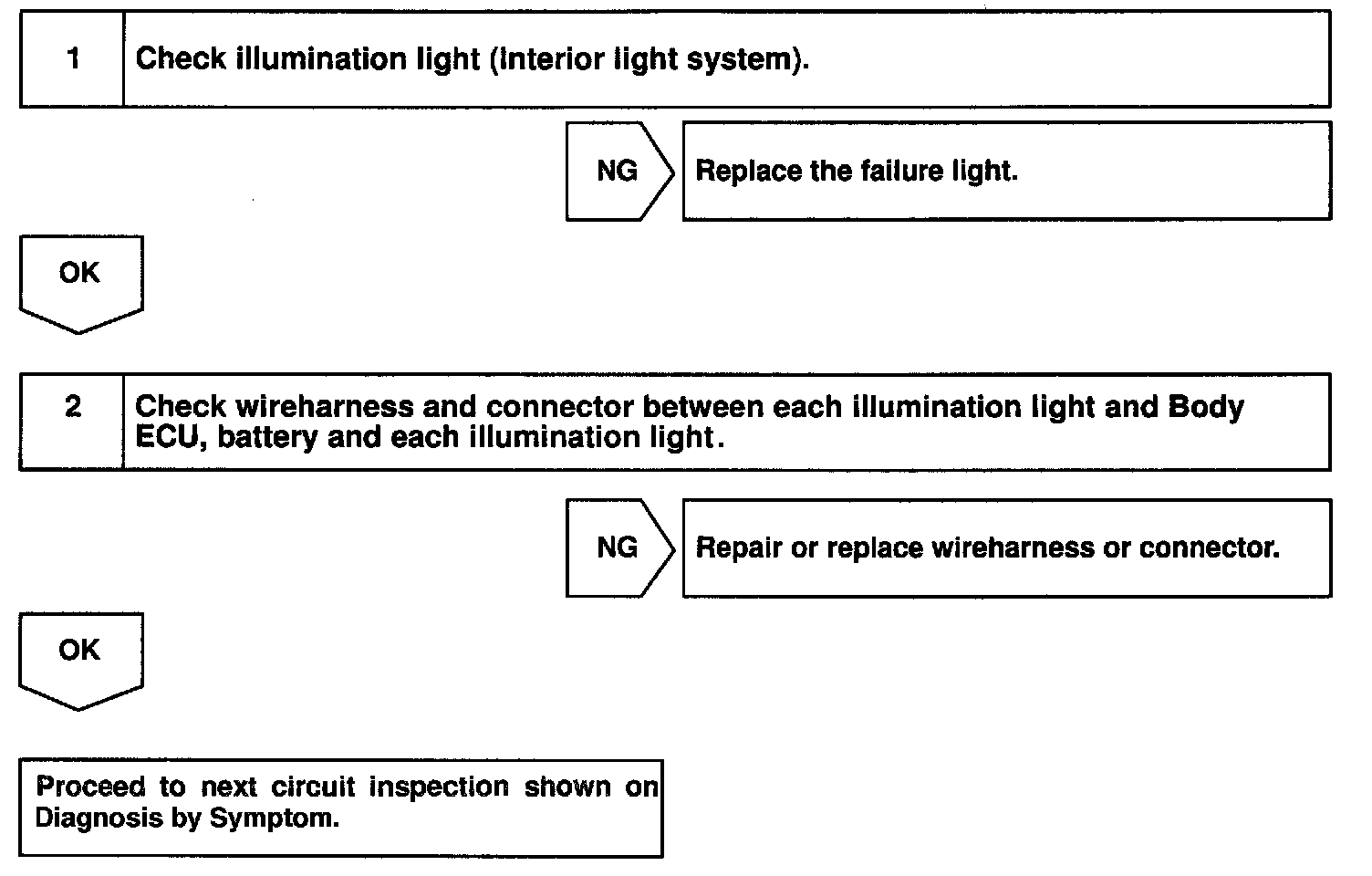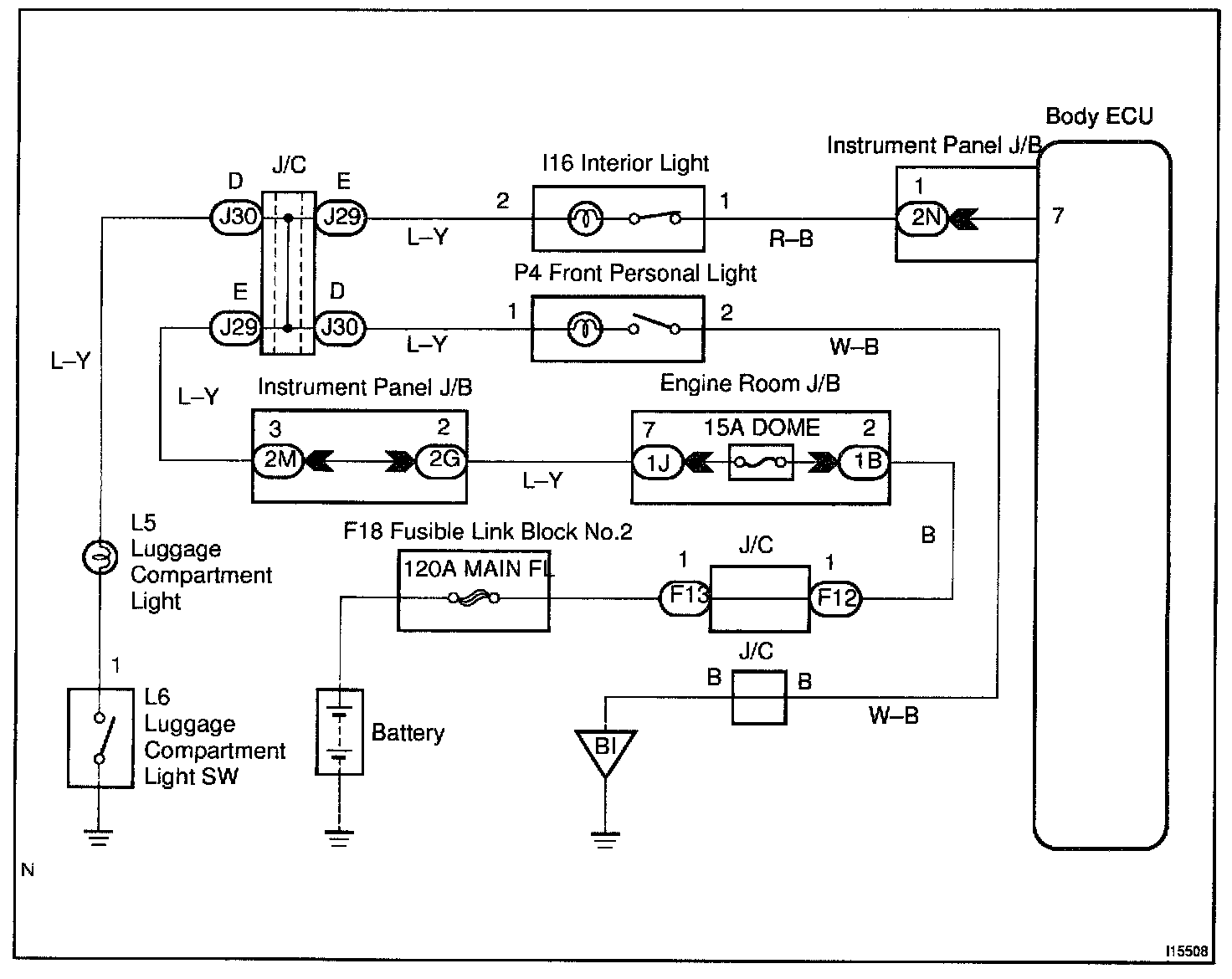 Receiving the courtesy signal from either of the door ECU, the Body ECU will make the interior light, ignition light, and foot light come on.