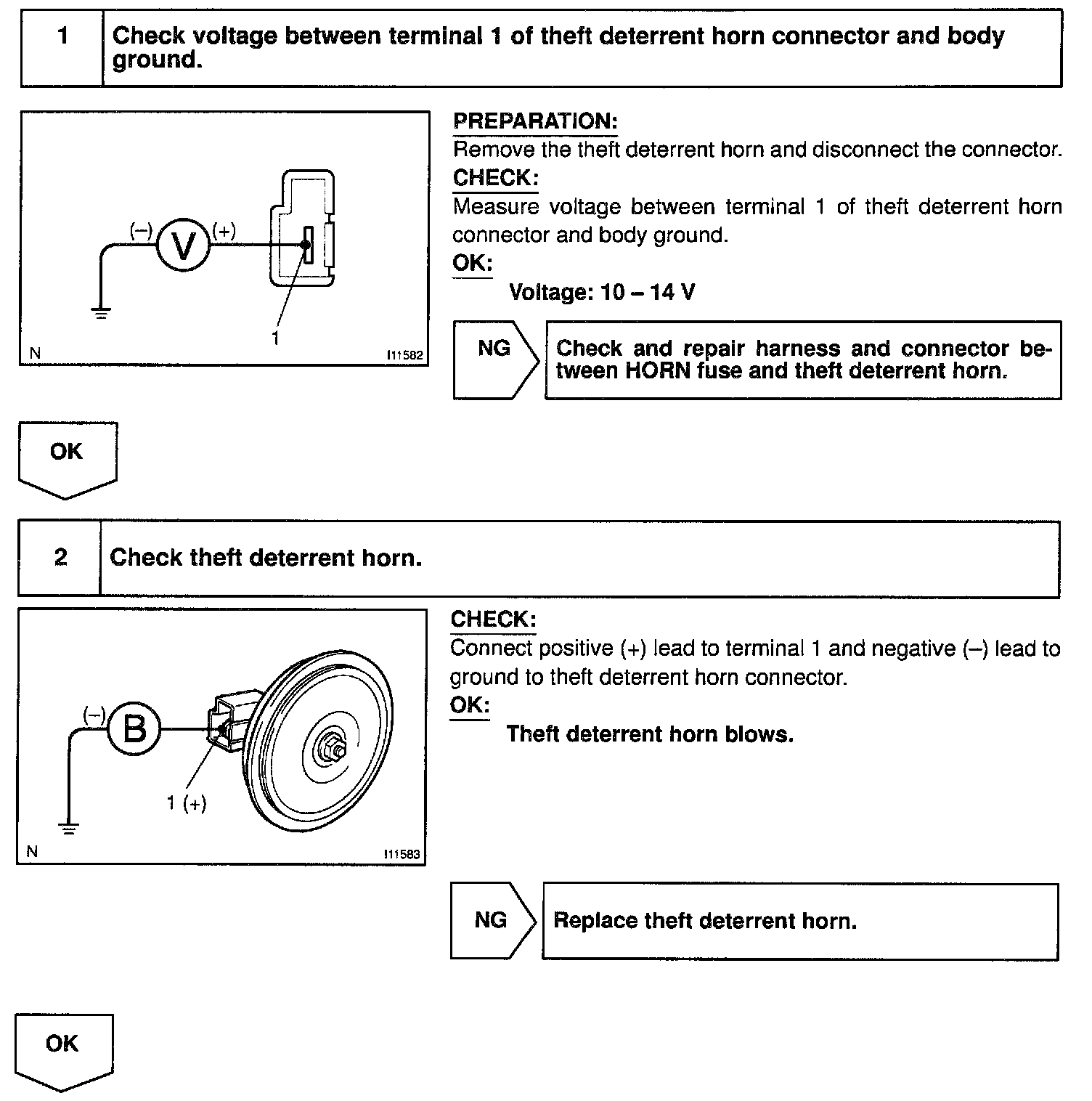 In this condition, if any of the following operations is done, the relay in the ECU turns OFF, thus stopping the theft deterrent horn from blowing: