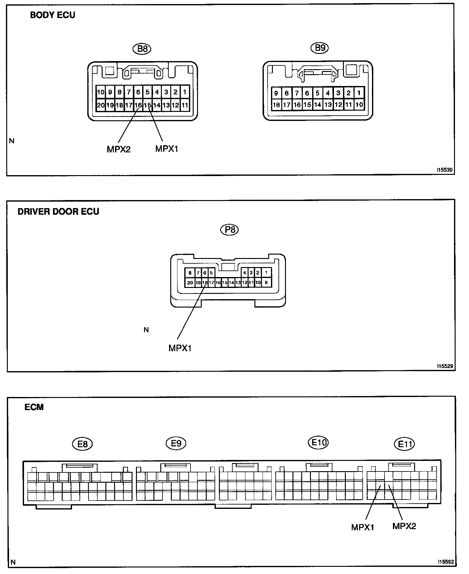 Terminals Of ECU (Body ECU , Driver Door ECU , ECM) - Connector View: