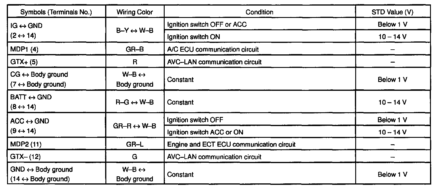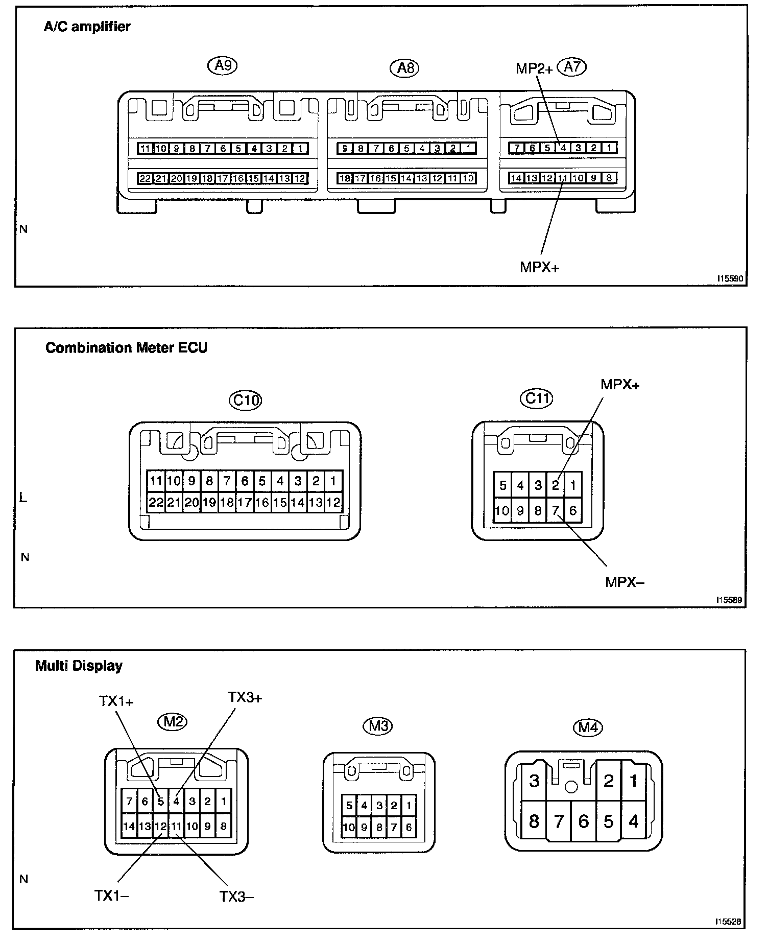 Terminals Of ECU (A/C Amplifier , Combination Meter ECU , Multi Display) - Connector View: