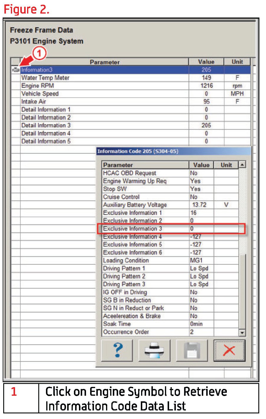 - To verify if a vehicle ran out of fuel, check the HV-ECU FFD for P3101 information code 204 or 205 "Exclusive Information 3" Data. If Exclusive Information 3 value is 1, then the system detected an "out of fuel" condition. (See Figure 2.)