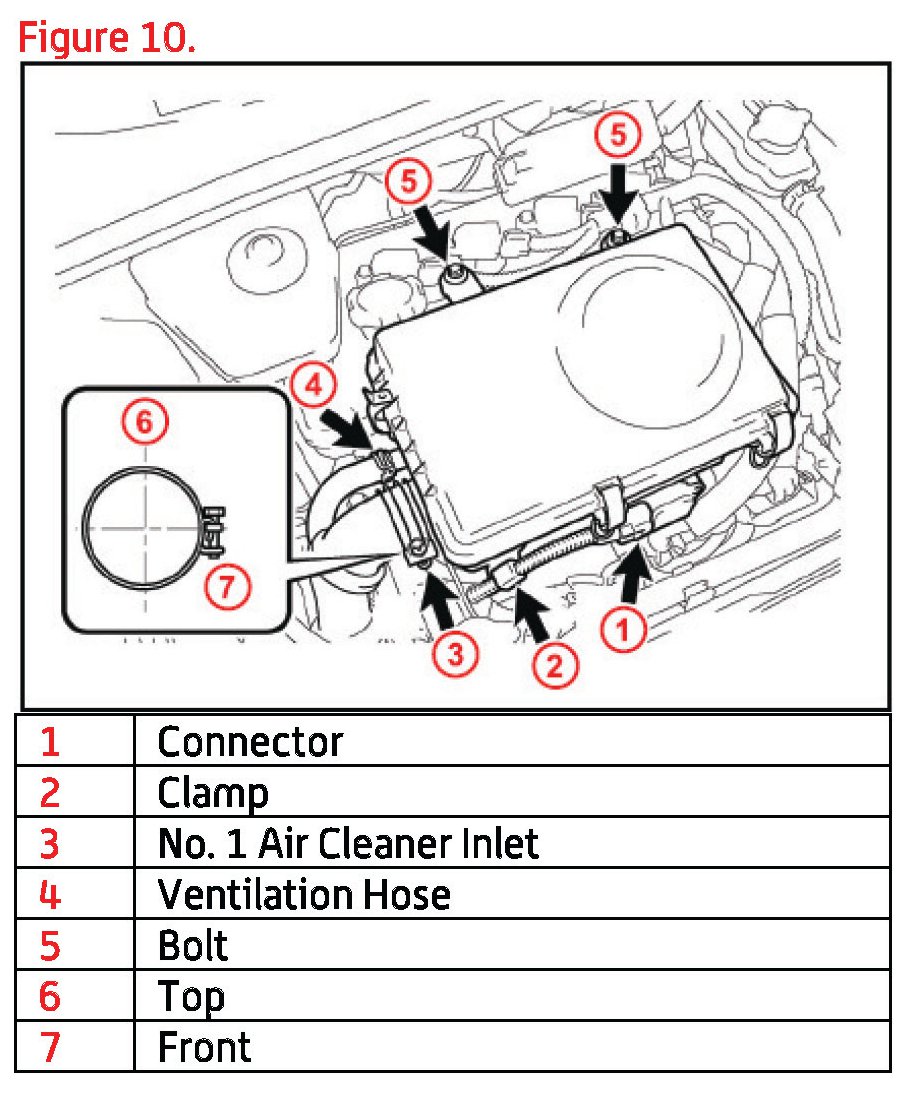 B. Disconnect the No. 1 air cleaner inlet and ventilation hose from the air cleaner assembly.
