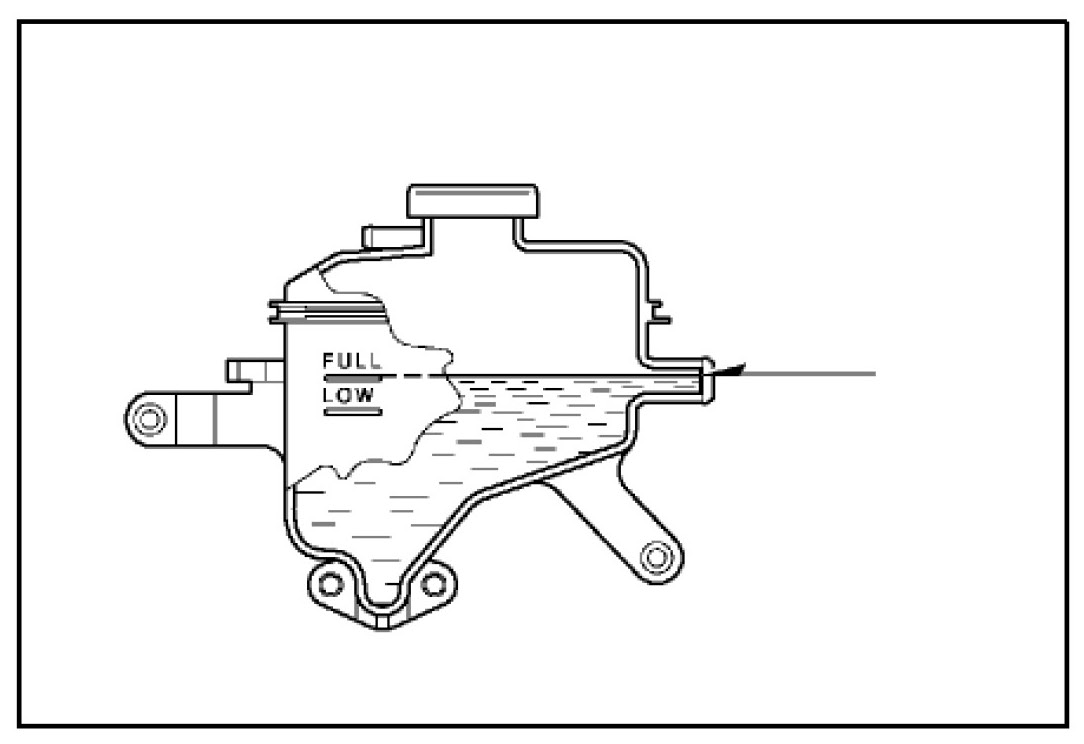I. Adjust the coolant level inside the reservoir tank as shown in the illustration.