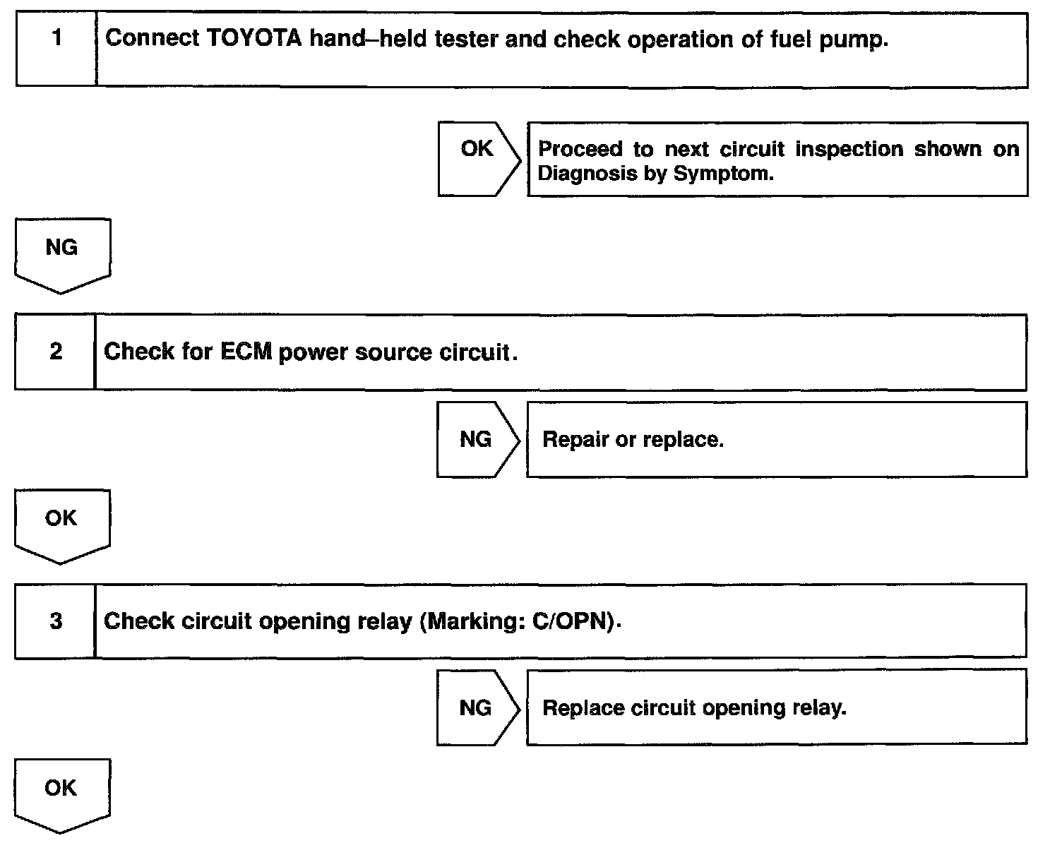 Engine ECU receives that signal and turns ON the circuit opening relay slightly earlier, then turns the fuel pump.