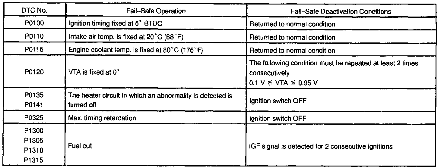 If any of the following codes is recorded, the ECM enters fail-safe mode.
