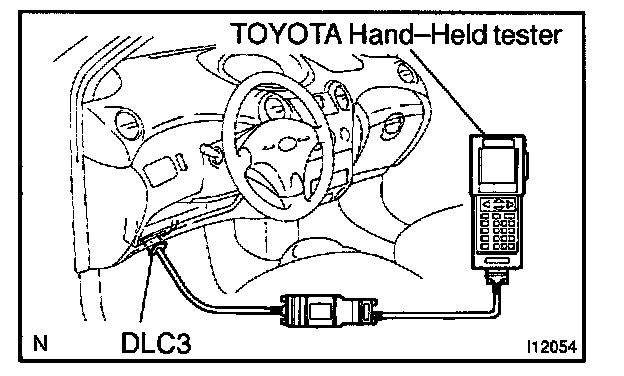 4. Connect the TOYOTA hand-held tester to DLC3 under the instrument panel lower pad.