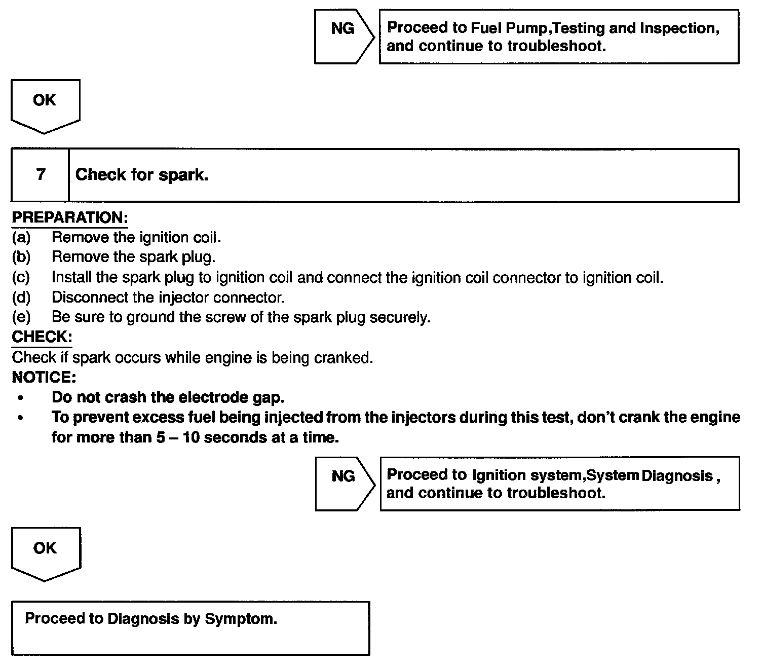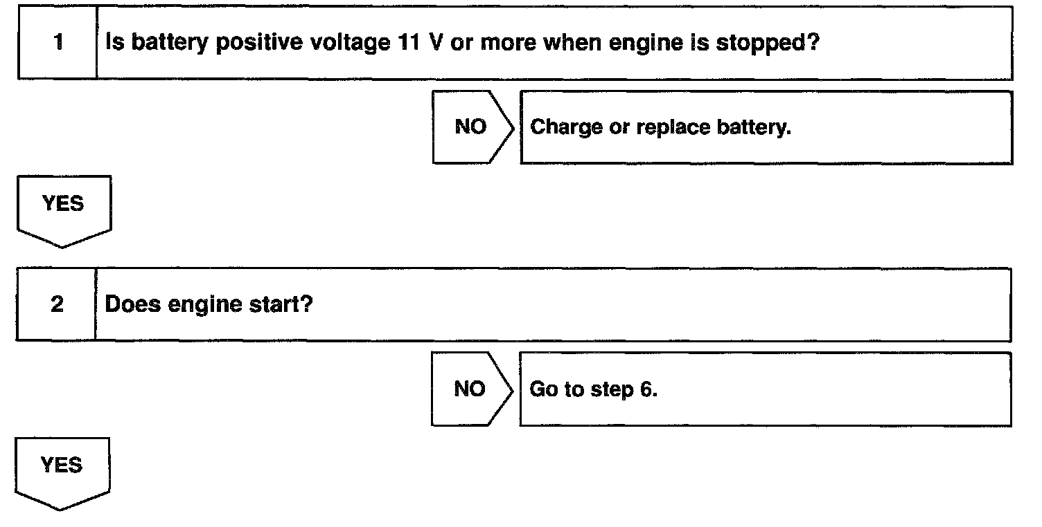 When the malfunction code is not confirmed in the DTC check, troubleshooting should be performed in the order for all possible circuits to be considered as the causes of the problems. In many cases, by carrying out the basic engine check shown in the following flow chart, the location causing the problem can be found quickly and efficiently. Therefore, use of this check is essential in engine troubleshooting.