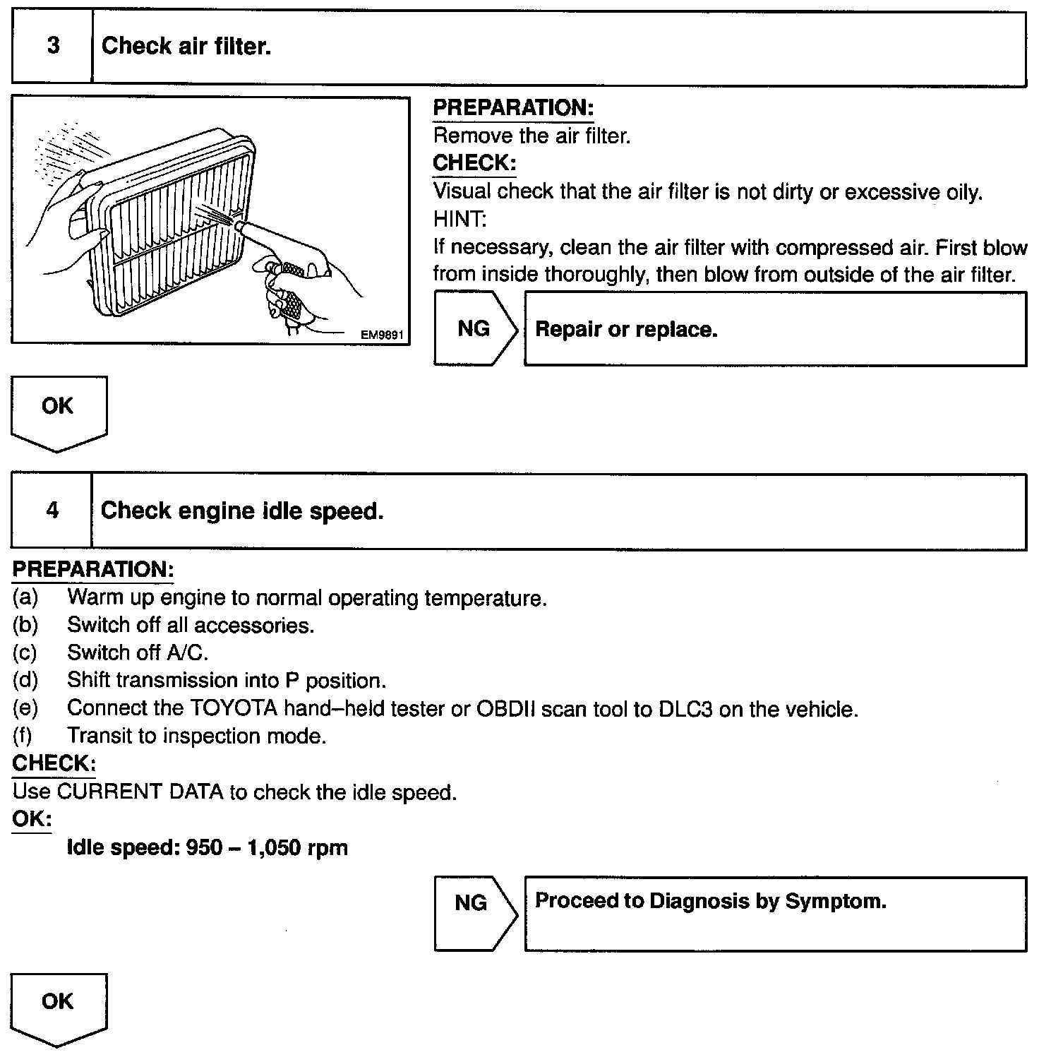 - When troubleshooting OBD II vehicles, the only difference from the usual troubleshooting procedure is that you connect to the vehicle the OBD II scan tool complying with SAE J1978 or TOYOTA hand-held tester, and read various data output from the vehicle's ECM.