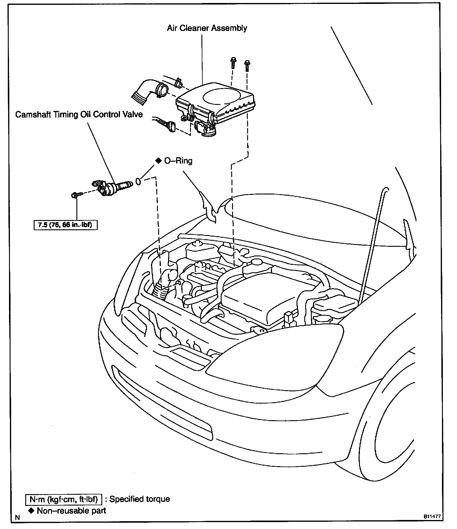 Torque: 7.5 N.m (76 kgf.cm, 66 in.lbf)