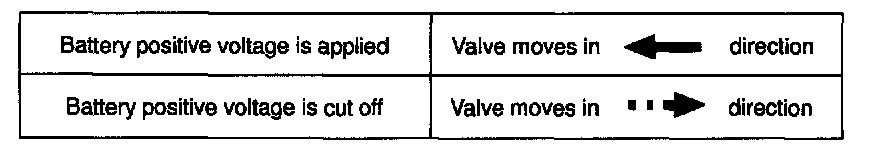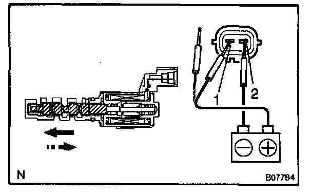 Connect the positive (+) lead from the battery to terminal 1 and negative (-) lead to terminal 2, and check the movement of the valve.