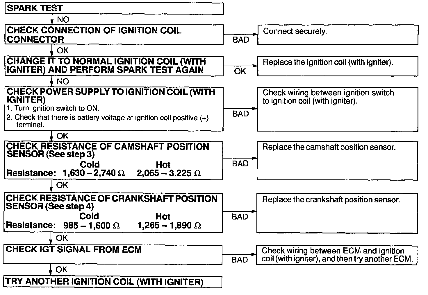 If the resistance is not specified, replace the crankshaft position sensor.
