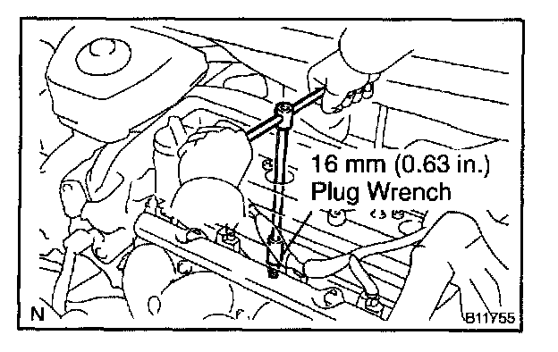 2. Using a 16 mm (0.63 in.) plug wrench, remove the spark plugs.