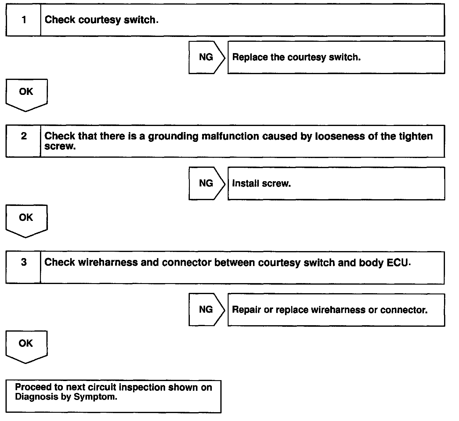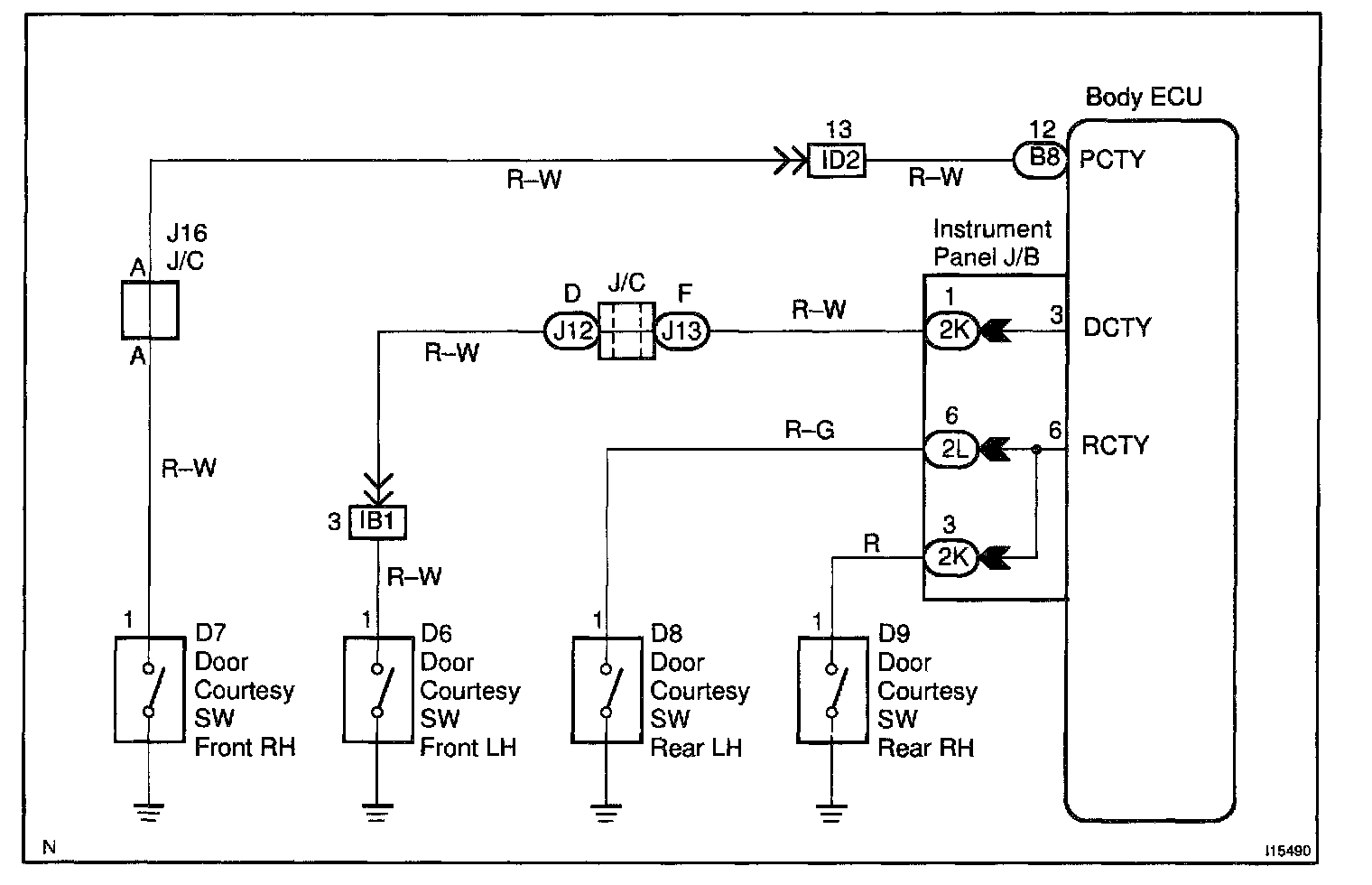 The door courtesy switch goes on when the door is opened and goes off when door is closed.