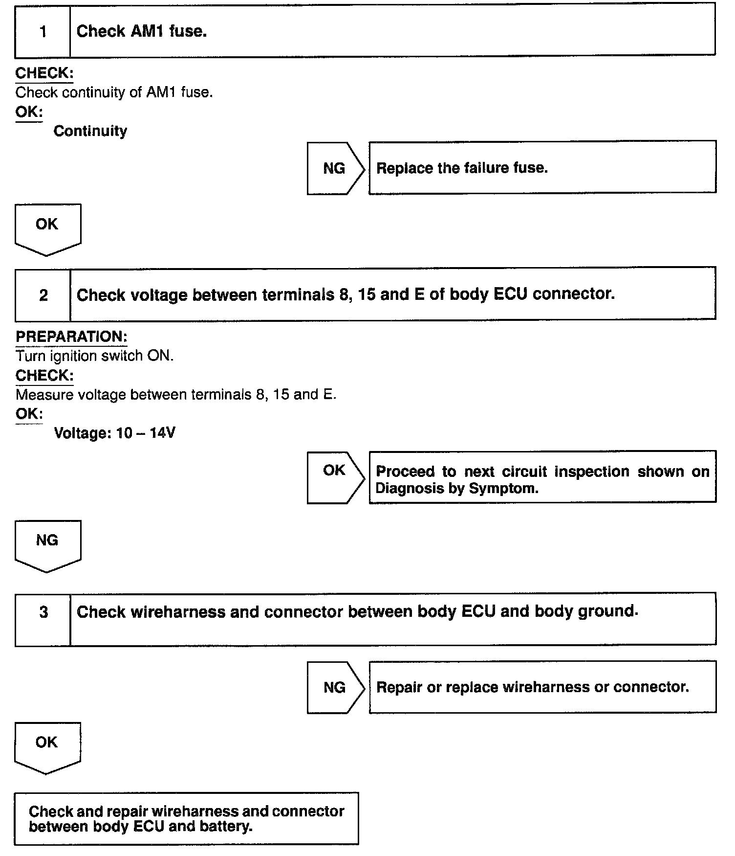 CIRCUIT DESCRIPTIONWhen the ignition switch is turned to the ACC position, battery voltage is applied to the terminal ACC of the ECU and when the ignition switch is turned to the ON position, battery voltage is applied to the terminal IG of the ECU.