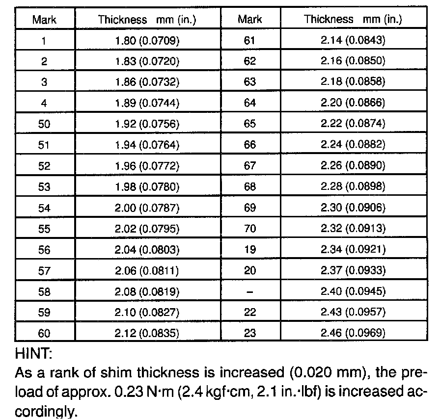 Thrust Washer Thickness