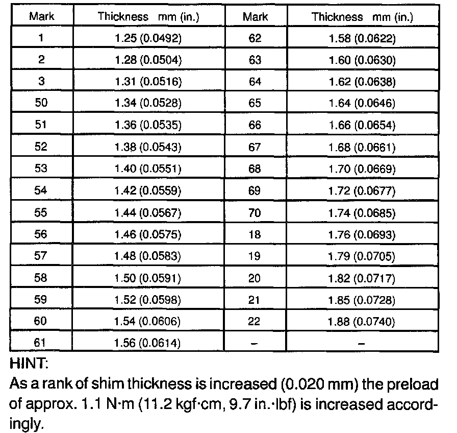 Shim thickness