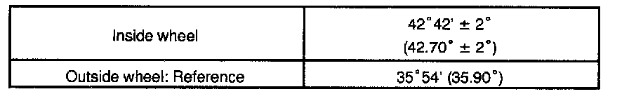 If the camber is not within the specified value, using the following table, estimate how much additional camber adjustment will be required, and select the camber adjusting bolt.