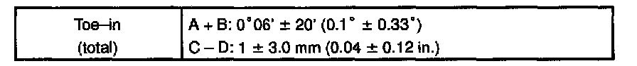 If the toe-in is not within the specified value, inspect and replace the suspension parts as necessary.