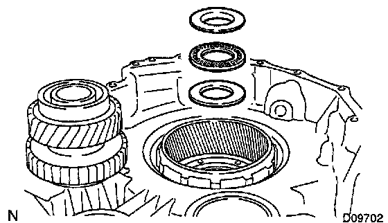 26. REMOVE DIFFERENTIAL SIDE BEARING OUTER RACE LH AND SHIM (MG2 side)