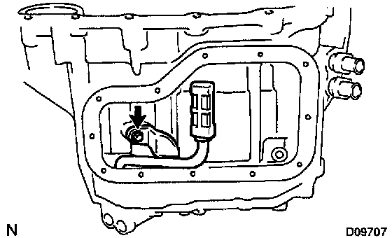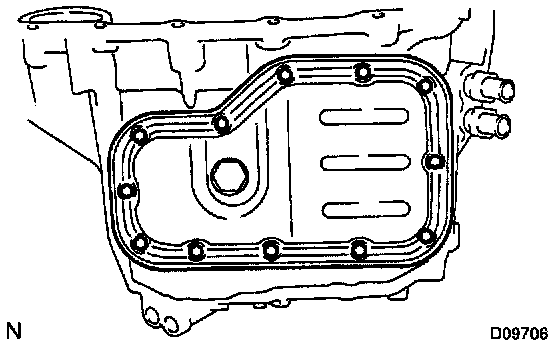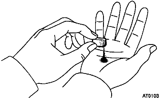 Remove the magnet and use it to collect any steel chips. Carefully examine the chips and particles in the oil pan and on the magnet to identify what type of wear has occurred in the transaxle.