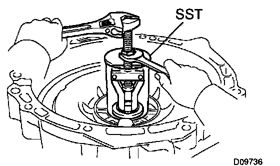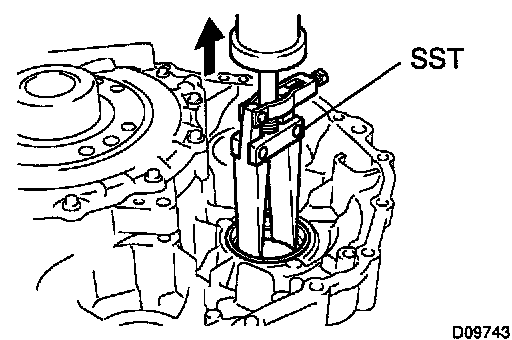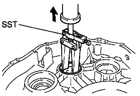 Using SST, drive out the differential side bearing outer race RH.