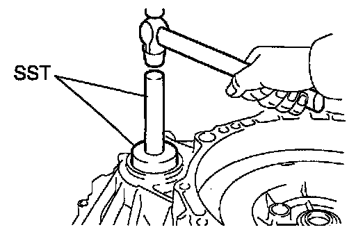a. Using SST and a hammer, install a new oil seal.
