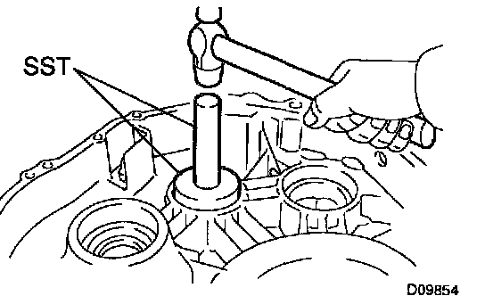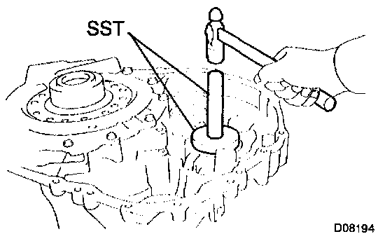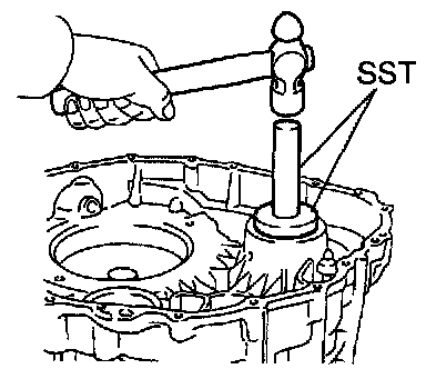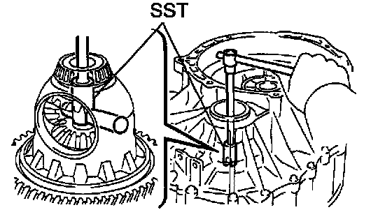 Using SST and a hammer, install the side bearing outer race RH of the differential.