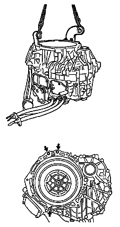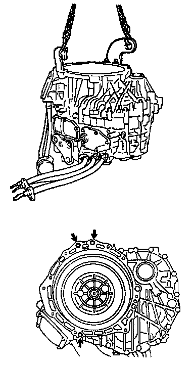 c. Install the engine hanger onto the MG1 side as shown in the illustration, and lift it up by a chain device.
