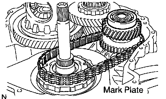 NOTICE: Install the chain with the mark plate facing up.